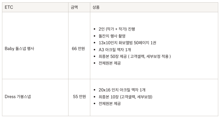 - 반려동물과 촬영을 원하시는 경우는 사전미팅때 꼭 말씀 부탁드립니다.
